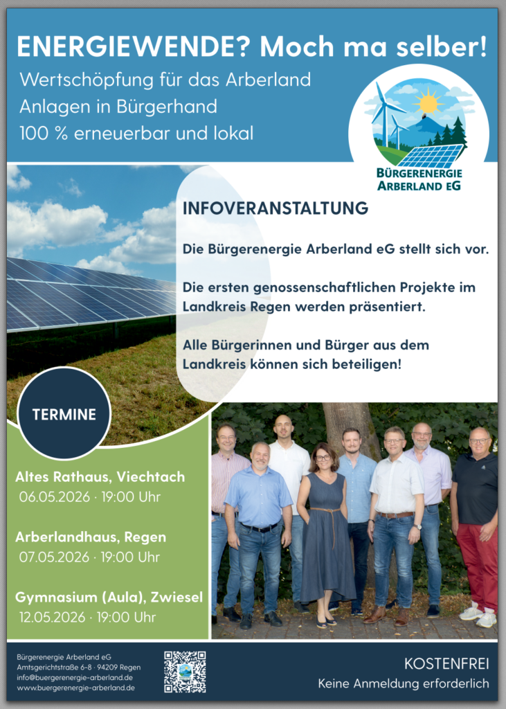 - 07. Mai 2026: Infoveranstaltung Arberlandhaus, Regen